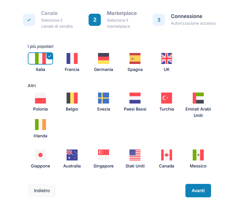 Scegli il marketplace che vuoi aggiungere.