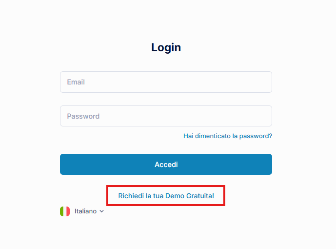 Per prima cosa accedi alla nostra pagina di login e richiedi la tua demo gratuita.